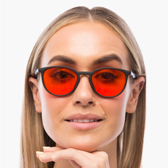 The exact frequencies of light in line with science are blocked with our amber/red lenses. We know that blue and green light found between 400nm-550nm disrupts melatonin production and damages your sleep. Our Blue Light Blocking Glasses block 100% of blue and green light that falls between 400nm and 550nm ensuring you have the most optimal blue blockers in the world.